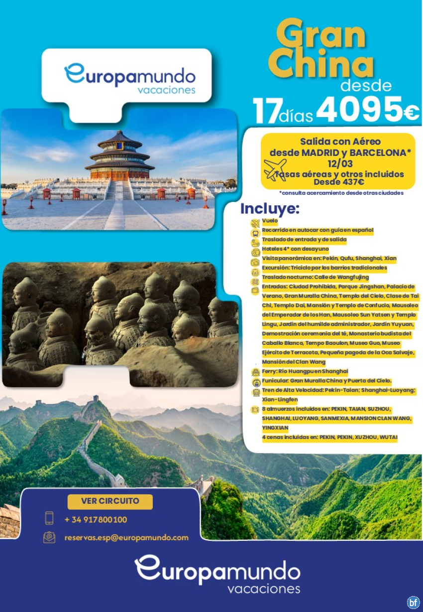 Gran China. Salida con Aéreos desde Madrid y Barcelona